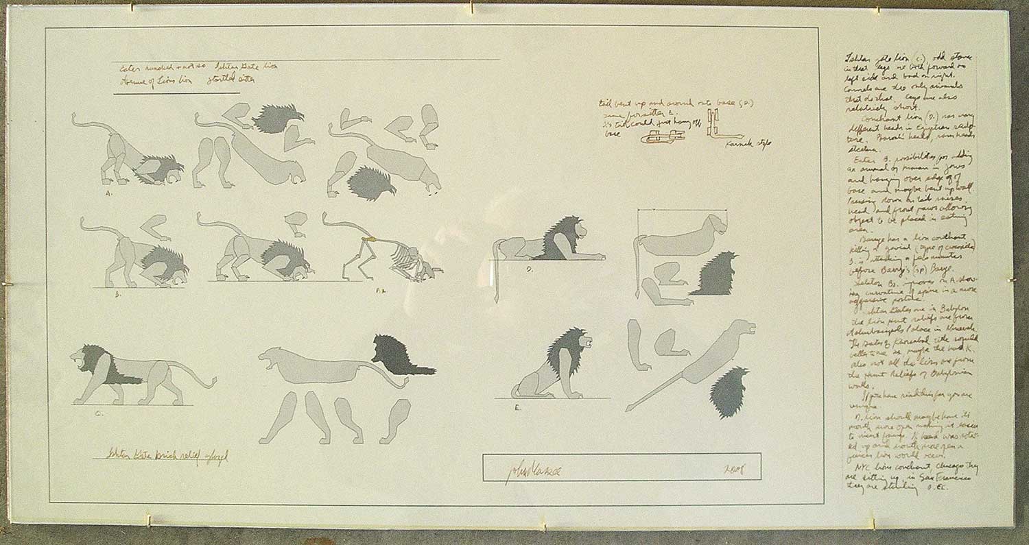 Lions from an exhibition at Goldleaf Gallery, Santa Fe, New Mexico in 2008 with drawings and plans for their construction.